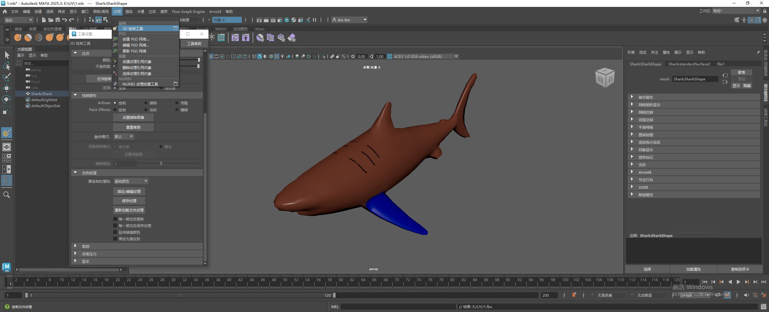 我们之前的鲨鱼模型使用的是 Maya 里的资产。我们也可以在 Maya 里准备纹理。