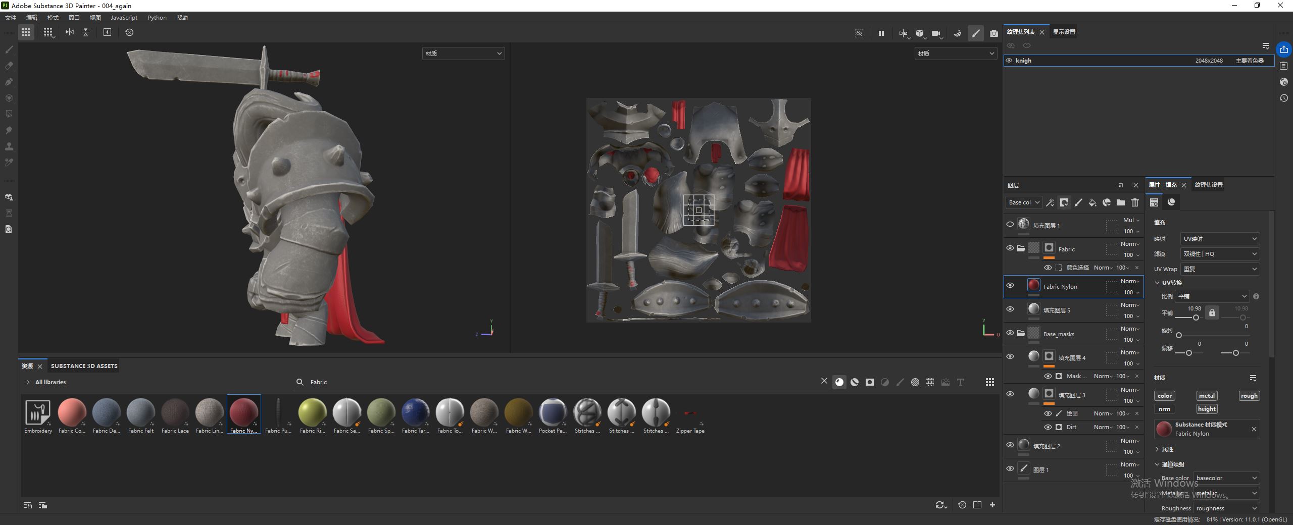 现在我们开始为披风添加材质。当你的模型有多种材质时(如布料、金属、骨骼等),使用文件夹来组织图层会非常有条理。