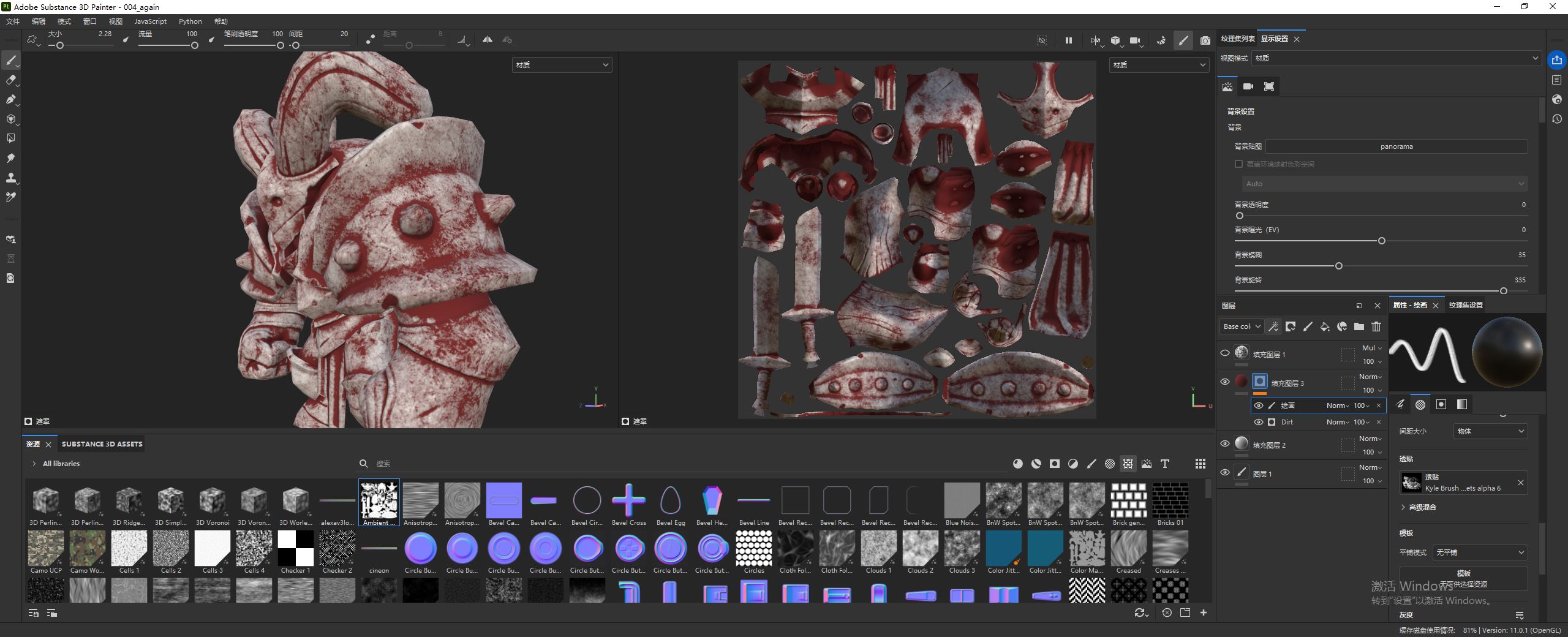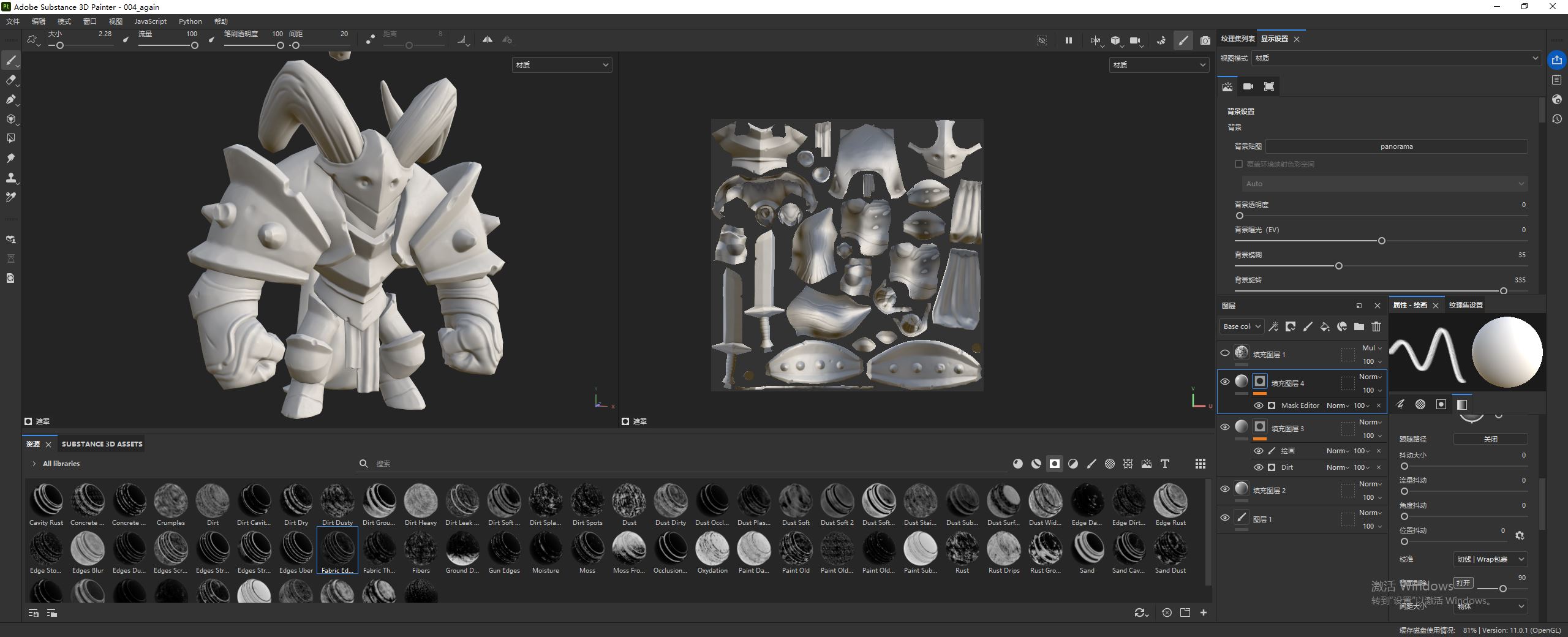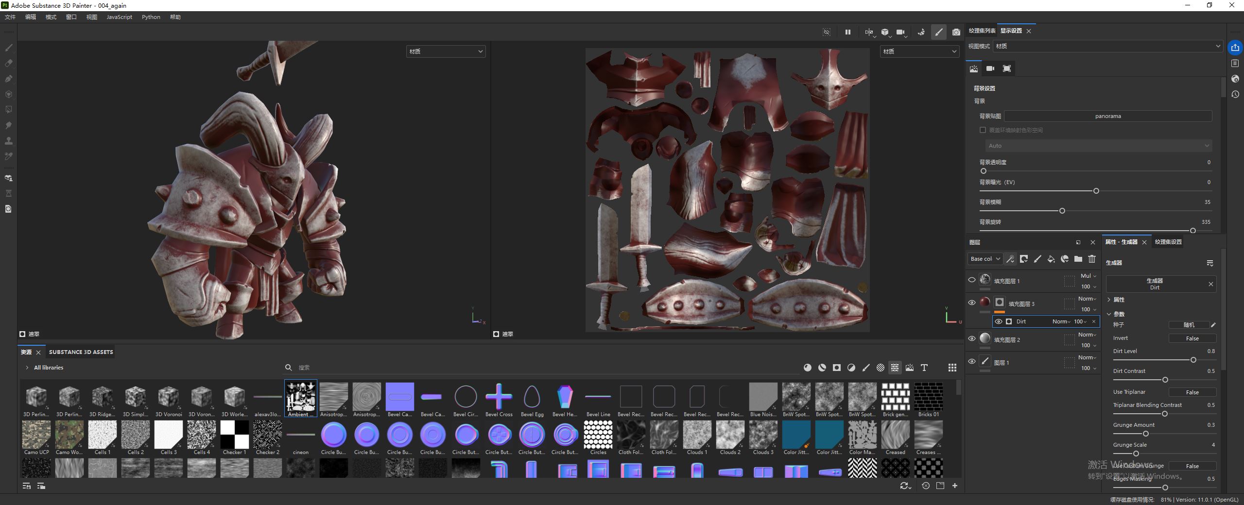 然后,可以通过调节污垢等级(Dirt Level)和对比度(Contrast)来控制泥土的分布。