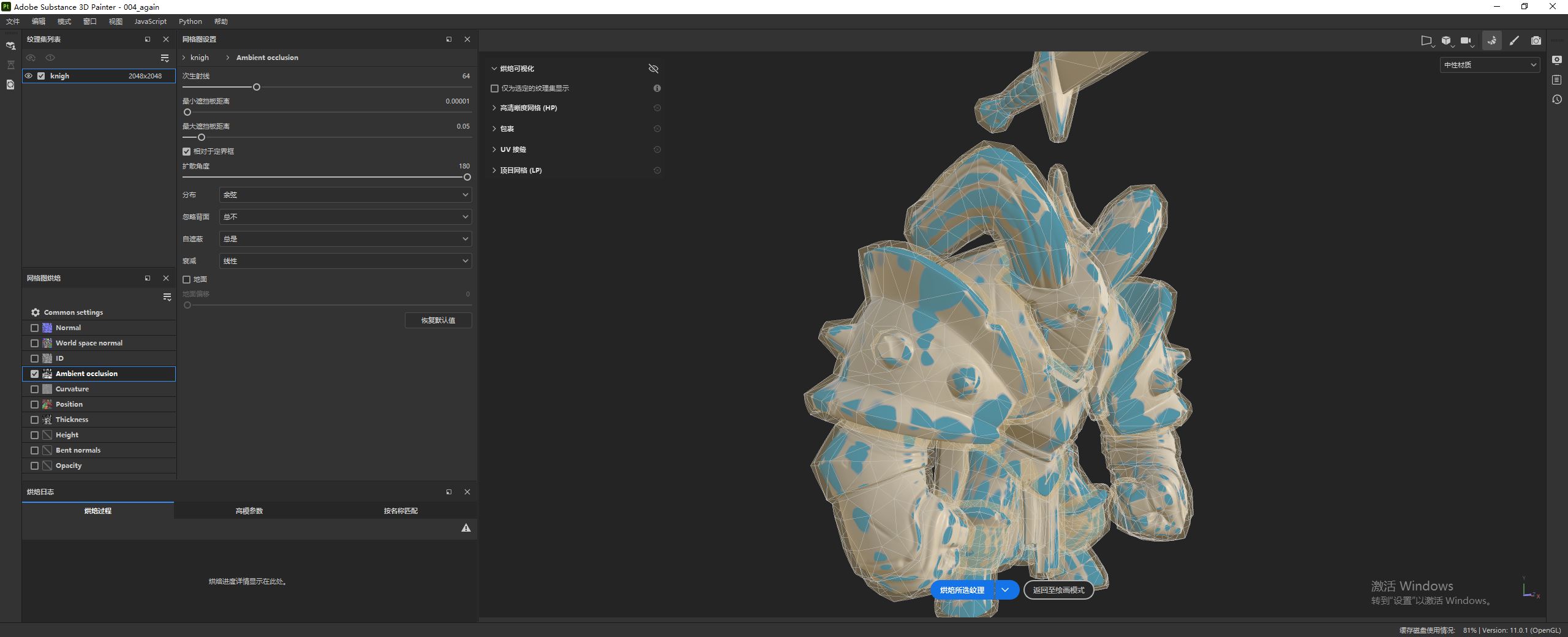 像此处,我们环境遮蔽贴图的效果不理想,我们需要重新烘焙环境遮蔽贴图。